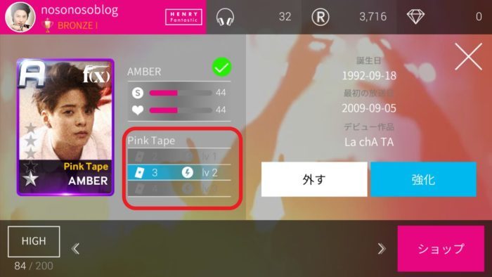 テーマを合わせたカードの枚数に応じてRAVEのレベルが上がります。(下のスクショであればPink Tapeがテーマです。)