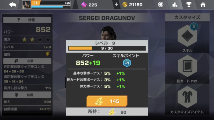習得できるスキルはキャラの星によって増え、同じストレングスでも上位のスキル程、効果が上がります。