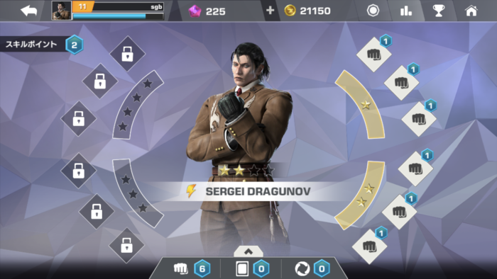鉄拳モバイルでは技はカードになっており、カードゲームのデッキのような形でデッキビルダーからキャラクターにセットします。