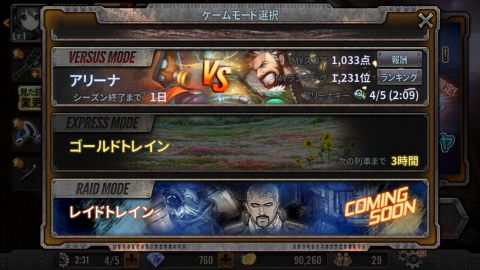 5つ目のモードであるレイドトレインは現在準備中となっていて遊べません。