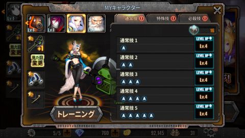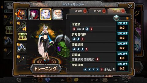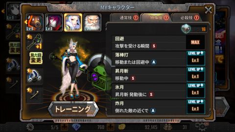 通常技、特殊技、必殺技にはレベルがあり、強化により性能が上がります。