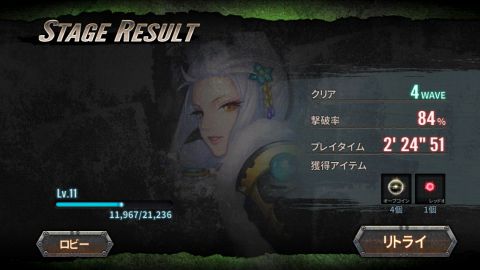 ステージをクリアすることでレベルはあがり、最初のうち(レベル10ぐらいまで)は割とさくさくあがります。