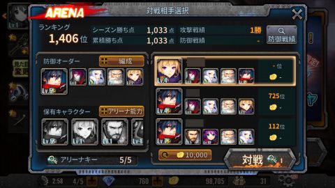 アリーナでは他のプレイヤーの防御デッキと対戦を行います。