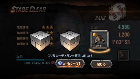 これは予測ですが、このクリア報酬はステージのクリア評価(最高S)によって変化しています。
