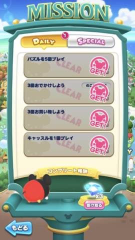 デイリーミッションをすべてクリアすると、デイリーコンプリート報酬としてダイアが3個手に入ります。