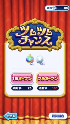 ツムツムチャンスはツムが出るまで貯まったトレジャーをオープンすることができます。