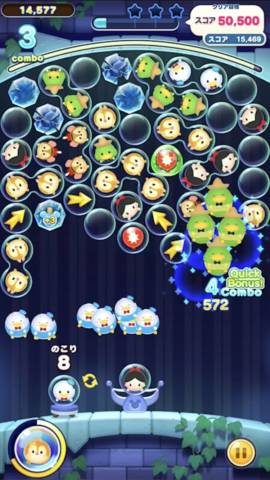 何も操作していなくてもフィールドのツムは微妙に動いているので、しばらく待っていると勝手にツムが消えてコンボがつながることも多いです。
