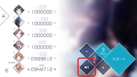 ▲スピーカーのアイコンからノーツタップ時の効果音のON,OFFを切り替えることができる。