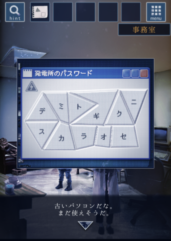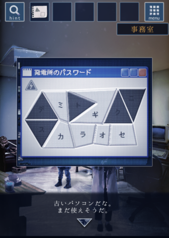 - 先ほどのパソコンの発電所のパスワードから平行四辺形⇒三角⇒菱形の順に押す。(黒い部分の形を右から)