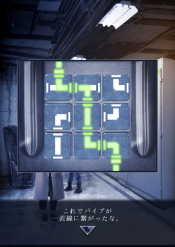 - 鍵で発電機の扉を開けるとパイプが並んだパズルが現れる。